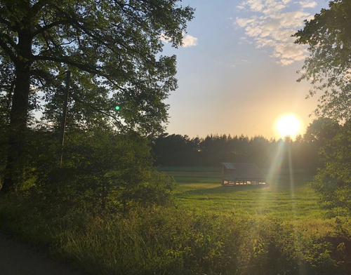 An meinem ersten Tag auf dem Heuerhof habe ich schon sehr viel erlebt und mir einen kleinen Überblick über den Hofalltag verschafft. Wir haben eines der Hühnermobile versetzt, damit die Hühner wieder frisches Gras zur Verfügung haben. Dann wurde der Stall noch ausgemistet und die Hühner wurden mit Futter und Wasser versorgt. Als nächstes durfte ich im Folientunnel ein paar Gurken ernten und die Triebe hochbinden. Später sind wir noch zu den Getreidefeldern gefahren, um ein paar Proben zu sammeln und die Feuchtigkeit zu testen. Dadurch weiß Alex wie lange das Getreide noch ungefähr braucht bis es geerntet werden kann. Super spannend fand ich den Einsatz von Leguminosen auf den Getreidefeldern. Diese bilden an ihren Wurzeln kleine Knöllchen, die als Stickstoffspeicher dienen...da braucht man gar keine industriell hergestellten Stickstoffdünger.