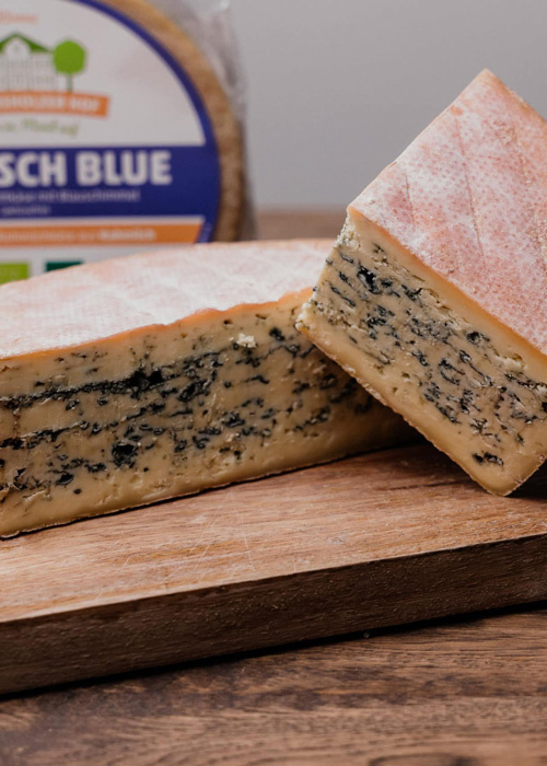 Der Friesisch Blue ist ein „Kinde des Nordens“. Dieser Käse verbindet die anglo-dänischen Tradition des Blauschimmelkäse aus Kuhmilch mit der rotgeschmierten, würzigen Rinde des Tilsiters.