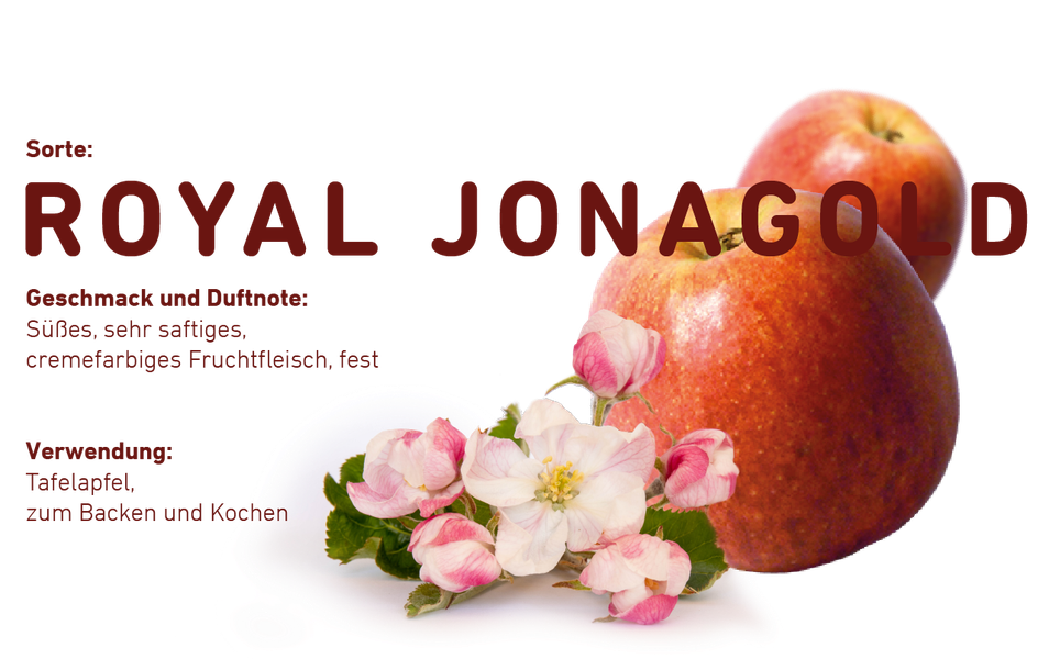 Im Frühsommer bis in den Juli hinein gibt es die lange lagerfähigen Sorten Jonagold, Jonagored, Marnica und Red Jonaprince. Diese Sorten sind großfrüchtig, mit gelblich-cremefarbenem Fruchtfleisch. Sie sind ganzflächig rot oder rot geflammt und haben einen aromatischen Geschmack mit viel Zucker und wenig Säure. Sie eignen sich zum Snacken zwischendurch, jedoch auch zum Kochen und Backen, wie zum Beispiel Apfelcrumble.