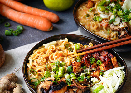 In Asien sind Nudeln genauso unverzichtbar wie Reis und werden zu jeder Tageszeit genossen.Sie sind fix zubereitet und dank alternativer Zutaten wie Reis-, Mungbohnen- oder Erbsenstärke oft glutenfrei. So eignen sich Reisfadennudeln nicht nur zum Frittieren, sondern auch hervorragend für frische Sommerrollen oder als Suppeneinlage. Mie-Nudeln aus Weizenmehl sind die Basis für traditionelle Ramen-Suppen und entfalten in einer kräftigen Brühe ihr volles Aroma.