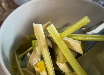 Bei asiatischen Gerichten darf natürlich das Gewürz Nummer Eins nicht fehlen - Sojasauce. Ursprünglich fiel diese nur als Nebenprodukt bei der Herstellung von Miso an, bei der die braune Flüssigkeit (Tamari) abgeschöpft wird. Später wurde diese dann gezielt hergestellt. Eine gute Sojasauce besitzt weder Zucker noch Aromastoffe und gewinnt ihren Geschmack und ihre Konsitenz durch eine gute Fermentation und lange Lagerung. (Checkt dazu unseren Beitrag über Sojasauce) Sowohl Miso als auch Sojasauce sind beste Lieferanten für den typischen Umami-Geschmack.