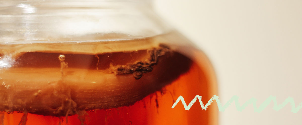 Der Fachbegriff des Kombucha-Pilzes ist SCOBY. Es kommt aus dem Englischen und bedeutet „Symbiotic Culture of Bacteria and Yeast“, zu Deutsch: „Symbiotische Kolonie aus Bakterien und Hefe“. Er ist dafür verantwortlich einen einfachen Tee in einen Kombucha-Drink zu verwandeln. Dieser biologische Prozess nennt sich Fermentation. Die Grundlage dafür ist gezuckerter Tee. Bakterien und Hefen nutzen die Nährstoffe des Zuckers für den Fermentationsprozess.