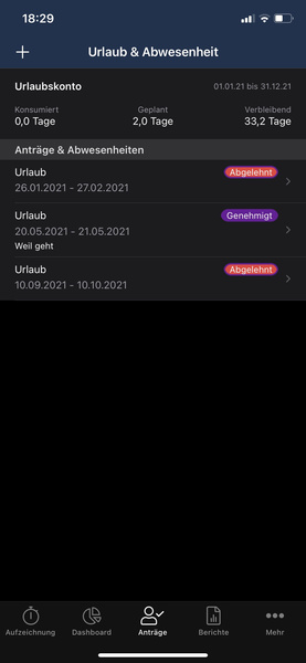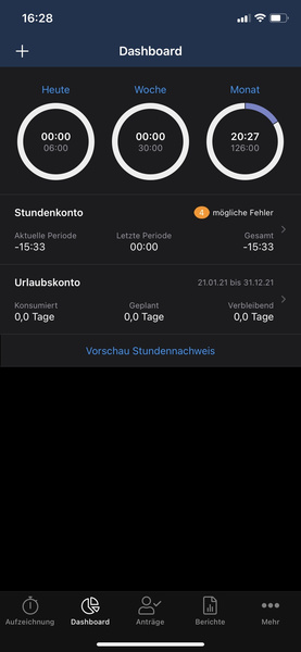 Wichtig: Pausen müssen nicht dokumentiert werden! Die rechtlich vorgesehenen Pausenzeiten (i.d.R. 45 Minuten bei einem 9 Stunden-Tag) werden automatisch abgezogen. Ein zwischenzeitliches "Ausstempeln" ist somit nicht notwendig. Bite sorgt dafür, dass ihr die vorgesehene Pausenzeit auch in Anspruch nehmt.