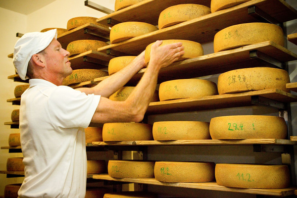 Ohne jegliche Transportwege gelangt die Milch direkt in die neben dem Stall gelegene Käserei. Dort wird sie mit Erfahrung, Wissen, Geschick und Fingerspitzengefühl zu einem breiten Sortiment von charakterstarken, unverwechselbaren Käsespezialitäten verarbeitet.