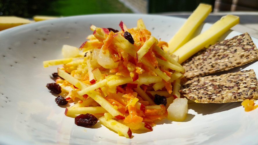 Fruchtiger rote-Linsen-Salat – leicht, sättigend und mit einer frischen Süße. Perfekt als schneller Lunch oder Beilage.
